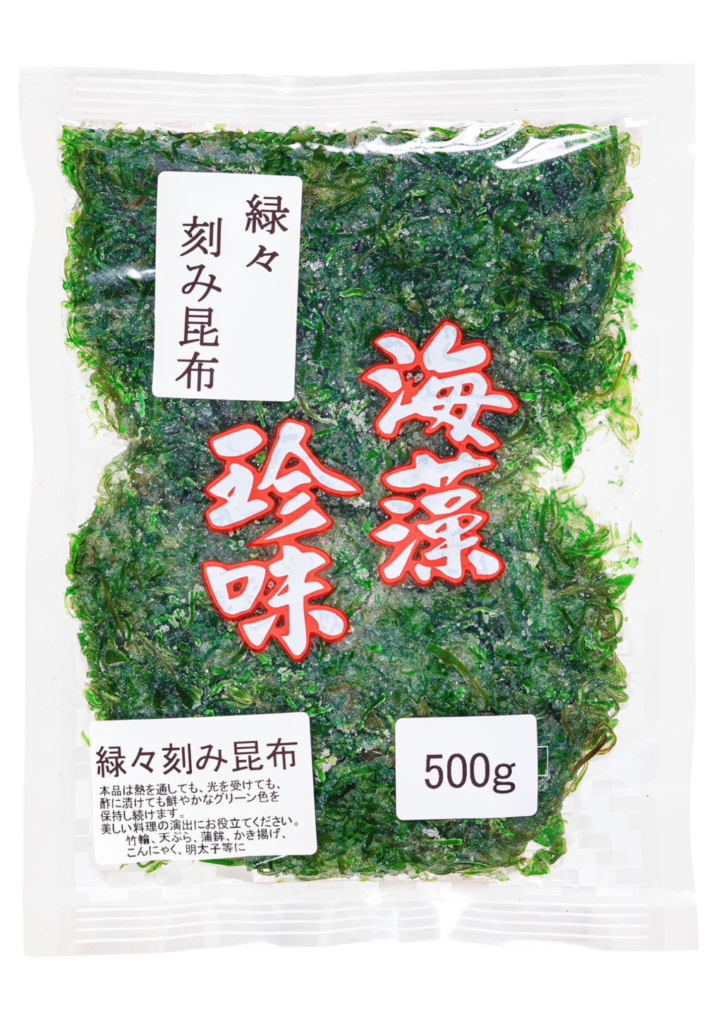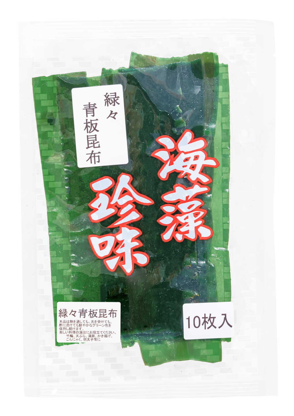 「結び昆布」「青板昆布」「緑々刻み昆布」に使用している昆布は、独自製法で昆布の鮮やかな緑色を維持し、