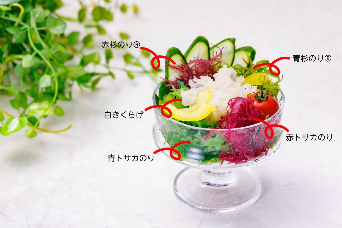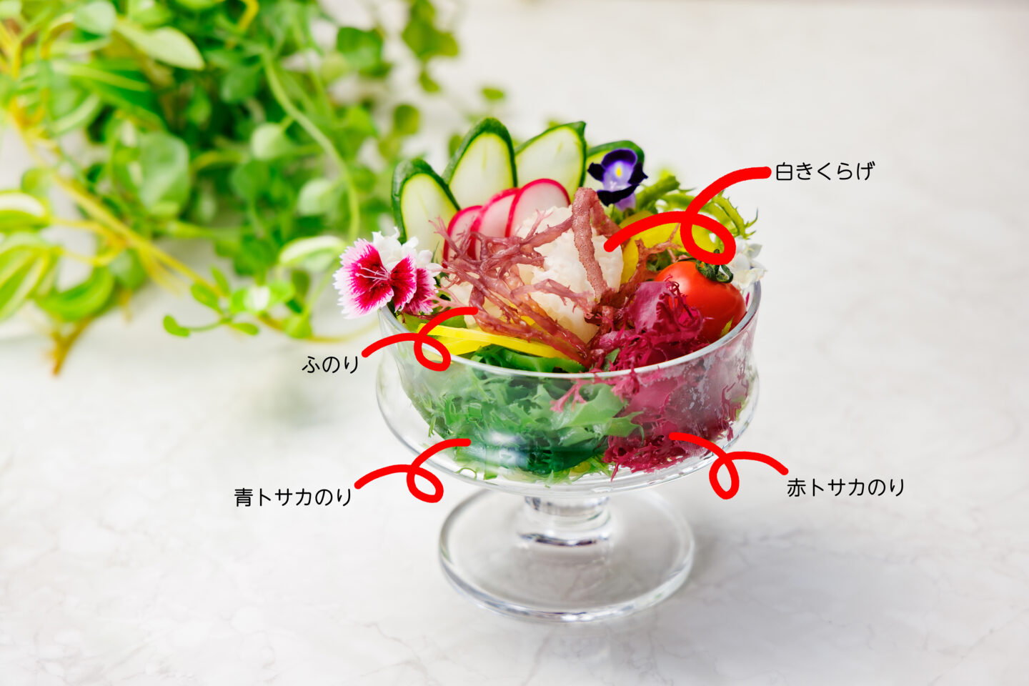 食感の良さと色の美しさから刺身のツマや海藻サラダなどに重宝されています。