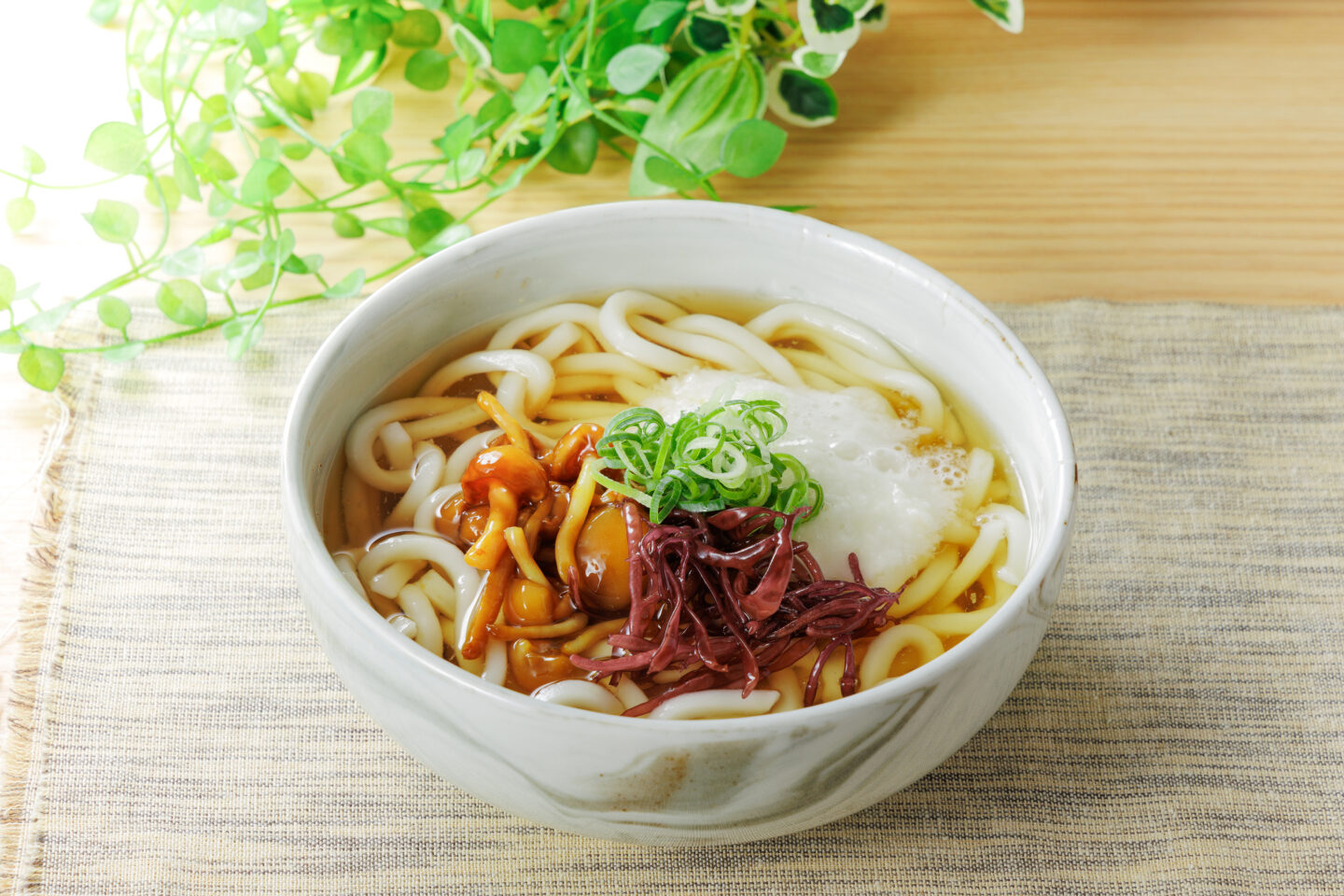 ふのりうどんとろろなめこ添え