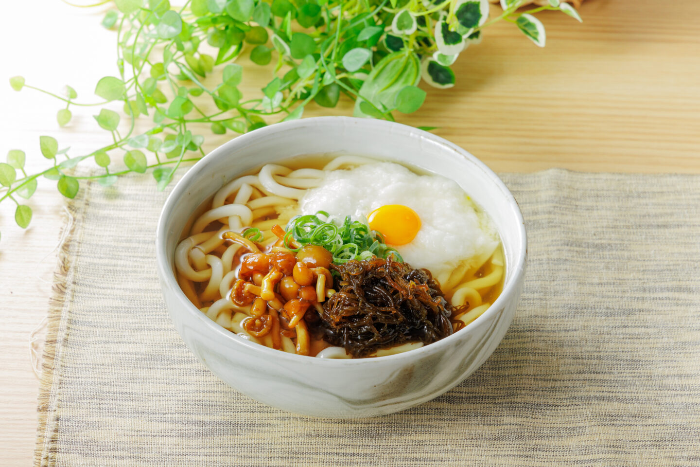 もずくうどんなめこ月見添え