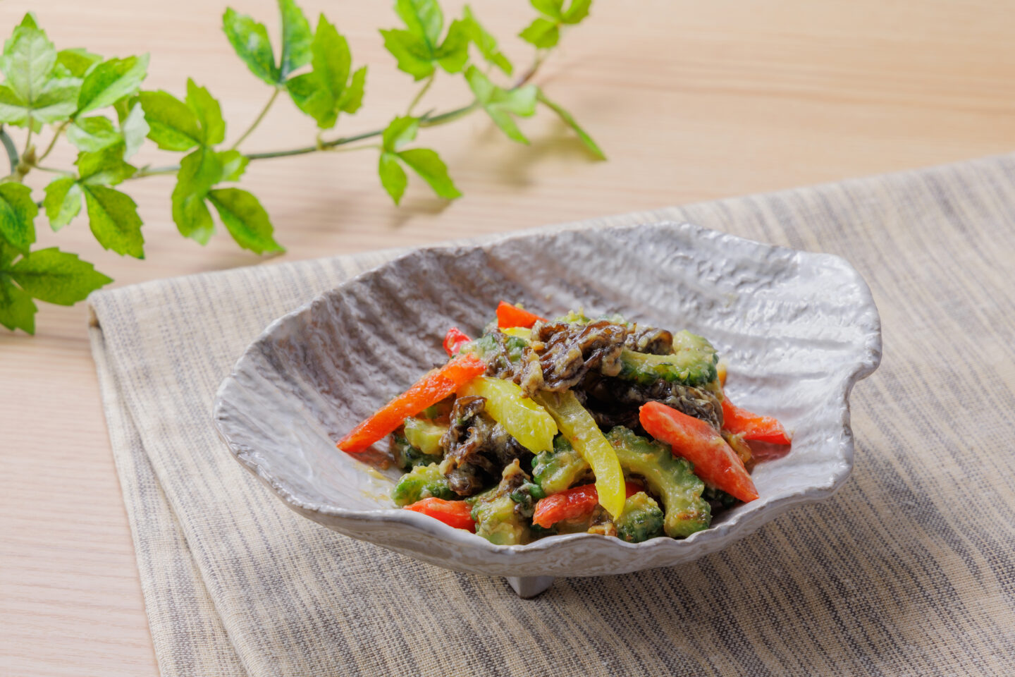 もずくとゴーヤの味噌マヨ炒め
